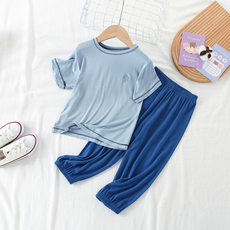 夏季儿童棉绸睡衣短袖长裤家居服套装中大童女童男童绵绸空调服薄
