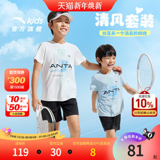 安踏儿童男童针织运动套2025夏季新款透气舒适中大童短袖短裤套装