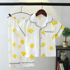 夏季短袖薄卡通全棉纱布男童儿童睡衣男孩小中大童纯棉家居服套装