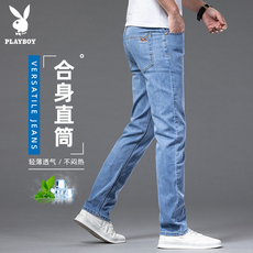 夏季超薄款弹力牛仔裤男士男装直筒宽松修身商务休闲高腰长裤