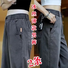 舒适冰丝凉感夏季休闲长裤男薄款高级感男士西裤垂坠感直筒裤子