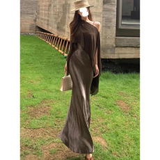 赫本风连衣裙女夏季2025新款黑色气质通勤V领大摆气质高级感长裙