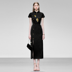 2025夏季新款新中式国风提花撞金色绣花复古改良旗袍连衣裙