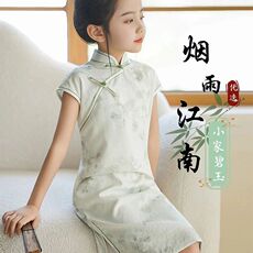 女童旗袍2025新款夏季江南国风改良走秀古筝儿童新中式演出连衣裙