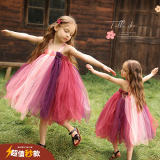 女童吊带公主裙2025新款夏季宝宝韩版球球网纱裙儿童多巴胺连衣裙