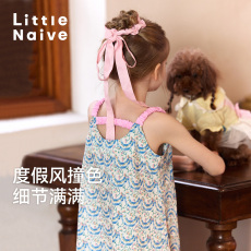 PISELLI史豌豆女童连衣裙2025夏季新款洋气甜美中大童满印吊带裙