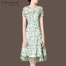 夏季大码女装连衣裙女妈妈气质夏装中长款修身显瘦短袖碎花a字裙