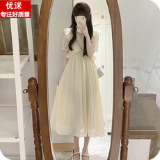 女大童茶歇法式白色连衣裙初中学生夏季甜美气质少女孩可爱长裙子