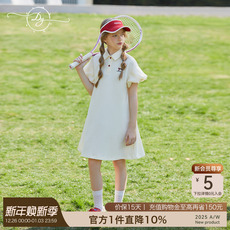 女童连衣裙夏2025新款中大童白色衬衫领学生裙演出儿童学院风裙子
