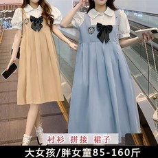 胖女孩公主裙夏装新款初中学生裙子女大童胖女童连衣裙加肥加大码