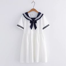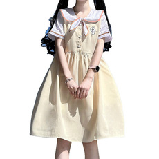 大童女童连衣裙海军领泡泡袖学院风夏季薄款透气收腰显瘦学生裙子