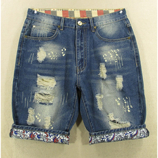 牛仔中裤五分裤男30码破洞乞丐夏裤子卷脚KHCO包邮R103/2218-01