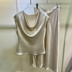 金苑夏季套装女2024新款设计感扎染吊带上衣中长裙两件套G242163