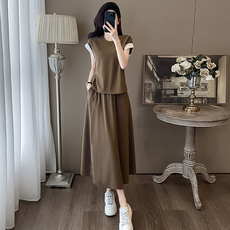 阿周家大码微胖薄款n休闲套装女夏季胖MM吊带上衣半身裙长裙两件