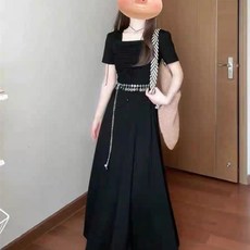 大码黑色长裙梨形身材穿搭套装夏季胖妹妹高腰显瘦半身裙女两件套