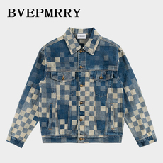 BVEPMRRY潮牌棋盘格子牛仔外套男士高端美式休闲复古宽松夹克上衣