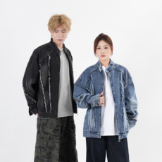 美式复古水洗钉珠设计牛仔外套男女秋冬季宽松百搭休闲夹克上衣潮