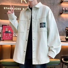 2025春秋季新款印花翻领牛仔衬衫外套男潮牌宽松休闲青年学生夹克