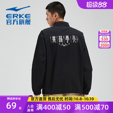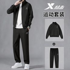 特步运动服套装男新款运动外套男黑色休闲夹克宽松直筒长裤两件套
