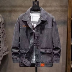 牛仔外套男日系潮流春秋休闲宽松多口袋大码男士复古工装夹克外套