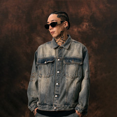 1807 哥特字体绣花做旧复古牛仔夹克2024秋季新款宽松休闲外套男