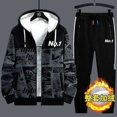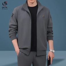 休闲运动套装男2025秋冬季新款中老年高端商务宽松夹克外套三件套