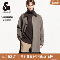 杰克琼斯男长款毛呢大衣男拼接PU领休闲羊绒混纺夹克外套衣服秋冬