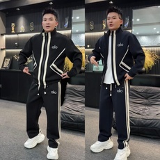 三条杠条纹休闲卫衣卫裤套装男秋季ootd穿搭短款廓形连帽夹克外套
