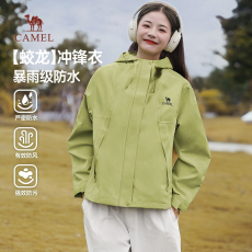 骆驼蛟龙冲锋衣女装2025春秋新款绿色外套户外软壳防风短款夹克