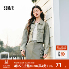 森马牛仔外套女短款做旧复古甜酷炸街小个子上衣春季翻领夹克潮酷