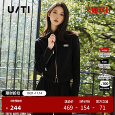 U/TI黑色双开拉链运动风外套女百搭短款休闲上衣尤缇时尚春季新款