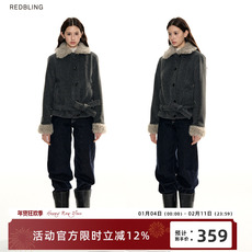 RedBling 原创设计灰色复古正肩绑带毛呢外套女冬季短款棉服外衣