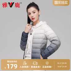 雅鹿2025短款羽绒服女冬季新款时尚休闲轻薄渐变色连帽鸭绒外套潮