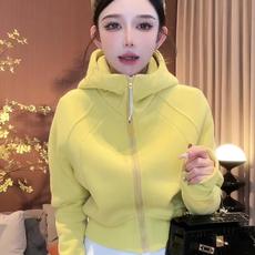 少女双面绒连帽开衫冬宽松短款小个子初高中学生加绒加厚卫衣外套