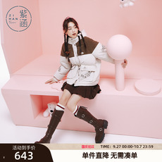 Eland衣恋棉服女学院风撞色设计加厚短款夹克外套冬季款