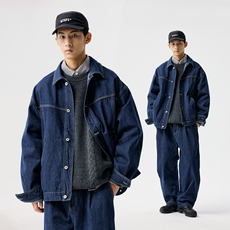 ALLIN 复古原牛深蓝色牛仔外套男秋冬潮牌缉明线cleanfit翻领夹克