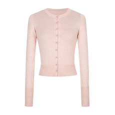 BLUEerror 圆领短款羊毛粉色针织开衫女两件套法式慵懒毛衣外套秋