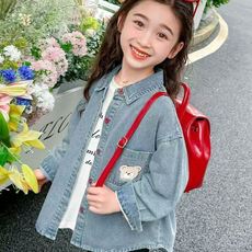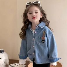 女童牛仔衬衫2025春秋新款女孩小熊韩版衬衣儿童时尚秋装薄款外套