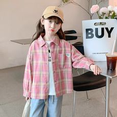 女童格子衬衫外套春秋款2025新款春季衬衣儿童薄款春装小女孩上衣