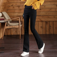 瑜伽弹力加绒微喇裤润肤修身显瘦休闲裤女加长版秋冬打底裤外穿黑