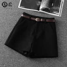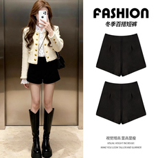 黑色毛呢短裤女秋冬季2025新款高腰A字打底靴裤百搭显瘦外穿阔腿