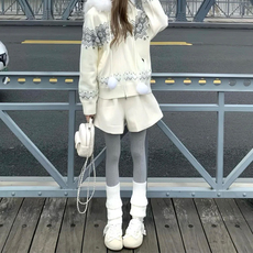 灰色毛呢辣妹短裤女冬季2025新款小个子加厚腰a字外穿打底靴裤