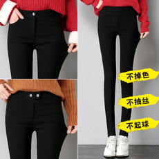 九分八分七分加绒小脚裤子黑色薄绒秋冬弹力铅笔高腰打底裤女外穿