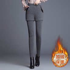 外穿裤裙羊羔绒假两件打底裤女裤冬季收腹加绒加厚保暖裤高腰弹力