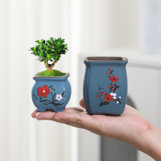 新款多肉花盆冰裂陶瓷迷你拇指盆透气带孔肉肉植物盆栽桌面小摆件
