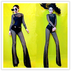 DS性感酒吧夜店女歌手DJ欧美显瘦修身演出服网眼喇叭裤套装舞台装