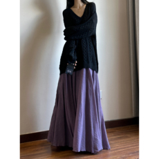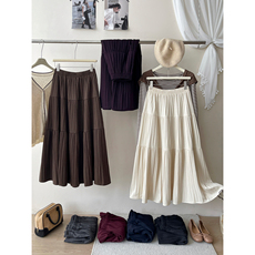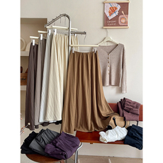 日韩系松弛感鹿皮丝绒乱皱百褶半身裙女秋复古慵懒风大摆a字长裙