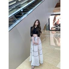 2025早秋韩版ins松紧腰大摆钩花蕾丝半身裙女温柔 重工刺绣长裙仙