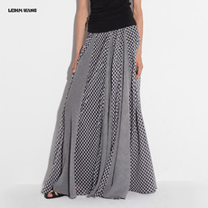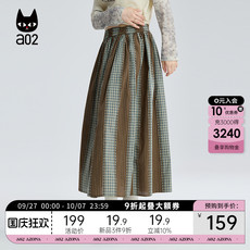 a02宽松格纹半身裙女2025新款秋季复古随性设计感长裙a字大摆裙