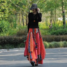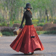 gagaopt2025秋季新款港风复古红色气质半身裙高腰显瘦大摆A字长裙